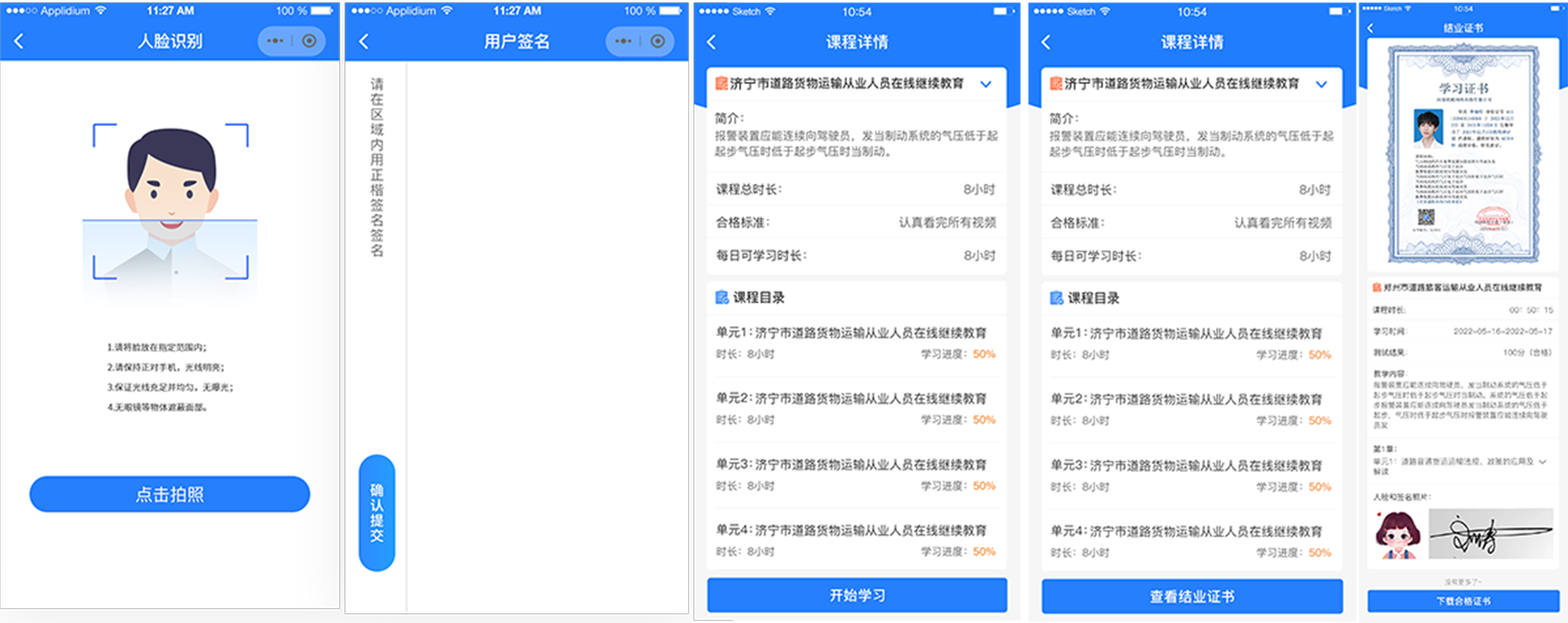 6.在开始学习之前需要人脸识别和用户签名,完成认证之后 即可学习。