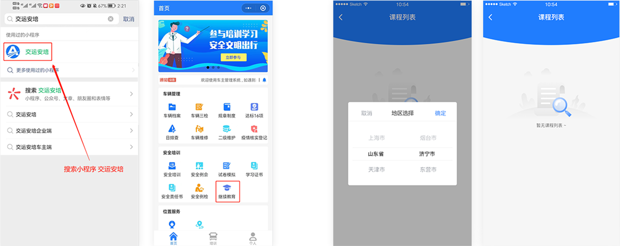 1.打开您的微信,搜索小程序“交运安培”点击进入小程序首页。