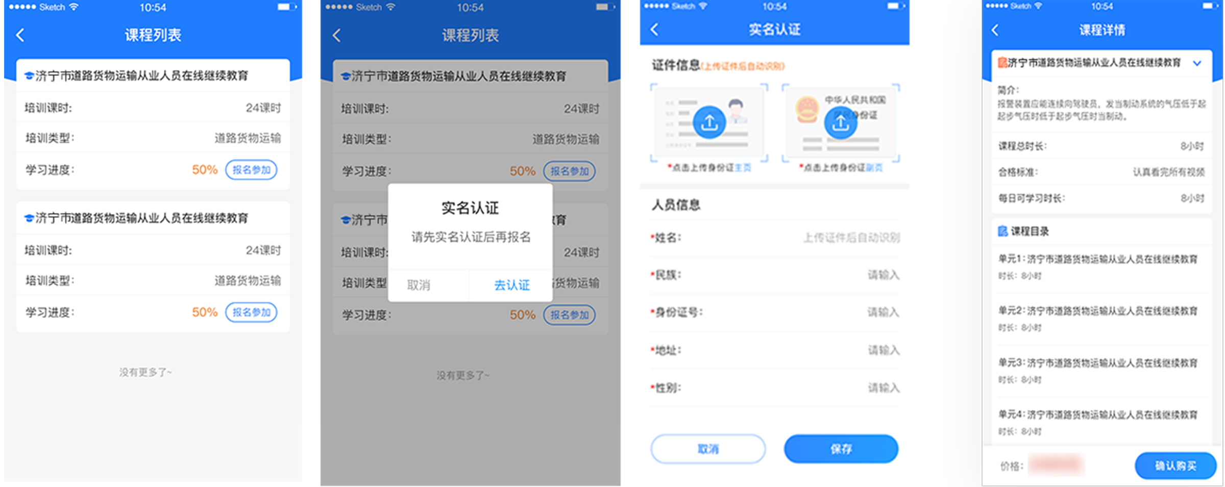 4.点击“报名参加”需要实名认证,点击去认证,上传自己的身份证正副页,身份证识别成功就可以缴费学习啦!
